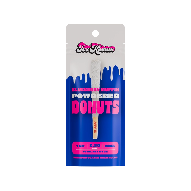 Ice Kream – Blueberry Muffin Powdered Donut (2.5g THCa Pre-Roll)Wake. Bake. Indulge.The Blueberr…
